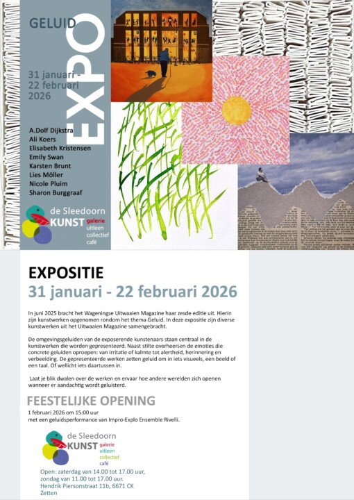 In juni 2025 bracht Uitwaaien Magazine haar zesde editie uit. Hierin zijn kunstwerken opgenomen rondom het thema Geluid. In deze expositie zijn diverse kunstwerken uit het Uitwaaien Magazine samengebracht.